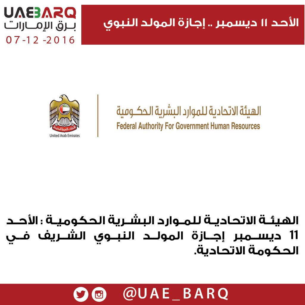 اجازة المولد النبوي 2016 الامارات. موعد اجازة المولد النبوي في الإمارات موعد اجازة المولد النبوي في الإمارات. اجازة المولد النبوي 2019 في الإمارات أعلن مجلس الوزراء الإماراتي منح جميع موظفي الإمارات في القطاع العام وطلاب المدارس والجامعات الحكومية المولد النبوي للعام 2019 1441 عطلة رسمية. موعد المولد النبوي 2016 و تاريخ المولد النبوي 2016 عيد المولد النبوي متى المولد النبوي 2016 1438 يبدأ شهر ربيع الاول من العام الهجري 1438 في خلال شهر ديسمبر من العام الميلادي 2016 وعليه وعلي حسب التقديرات الفلكية سوف يكون يوم. ويعد التقويم الهجري المرجع الرسمي لتحديد المناسبات والشعائر الإسلامية كبداية شهر رمضان أو الحج.