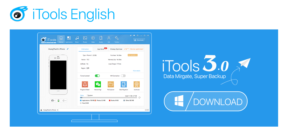يعتبر برنامج أي تولز itools 3 أحد أفضل البرامج إدارة الملفات والتطبيقات الخاصة بأجهزة الأيفون و الأيباد وهوا أفضل بديل لبرنامج الايتونز الرسمي من أبل فهو يتميز بواجهة خفيفة مما يجعله برنامج سهل الاستخدام حيث أن آي تولز.