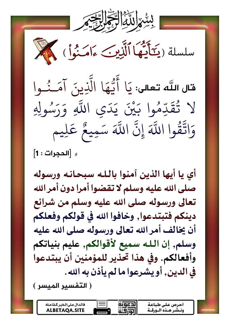 يا أيها الذين آمنوا لا تقدموا بين يدي الله ورسوله